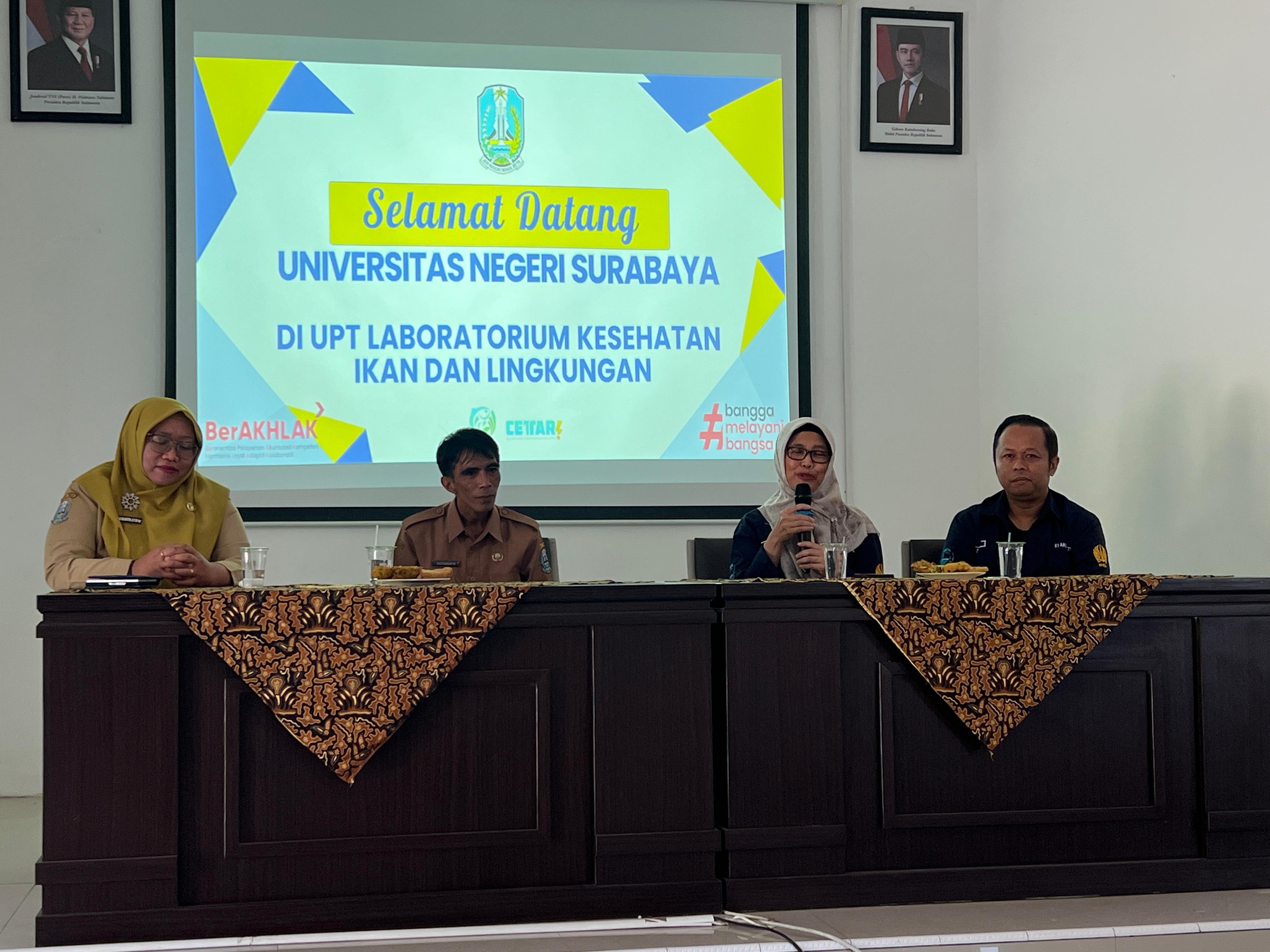 Prodi S1 Akuakultur Fakultas Ketahanan Pangan Universitas Negeri Surabaya berupaya memberikan pengalaman belajar yang aktual dan bermakna, salah satunya melalui program “Kuliah di Luar Kelas”. Program ini, salah satunya dikemas dalam bentuk kunjungan ke instansi yang bergerak di bidang budi daya perikanan. Selasa, 7 Oktober 2025, Prodi S1 Akuakultur FKP Unesa melakukan kunjungan ke UPT Laboratorium Kesehatan Ikan dan Lingkungan, Pasuruan. Sebanyak 72 mahasiswa berpartispasi dalam kegiatan ini dan didampingi oleh Koordinator Program Studi S1 Akuakultur, Reni Ambarwati, S.Si., M.Sc., serta para dosen Akuakultur, antara lain Agung Luthfi Fauzan, S.Pi., M.Si., Agum Pratama F.A., S.Pi., M.Sc., Ahnadia Wulan Ramadhana, S.Si., M.Sc., serta Putra Ali S. Matondang, S.Pi., M.Sc.